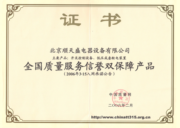 全國質(zhì)量服務(wù)信譽雙保障產(chǎn)品2006年315入網(wǎng)